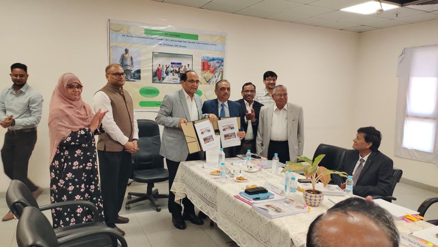Today, on 25.02.2025, at Kalyan Singh Super Specialty Cancer Institute, the 6th Institutional Ethics Committee (IRC) meeting was held. The MoU was signed & exchange between IEC & Kalyan Singh Super Specialty Cancer Institute, Lucknow. Director Prof. M. L. B. Bhatt welcome the all-committee members with gratitude & expressed his designed that the committee guide young researcher for application of ethical principal in biomedical health research and he also expressed his view that more interactive session and lectures to be conducted by the Institute on ethical principal for benefit of medical fidelity. Prof. Sabuhi Qureshi (Dean), Prof. Sharad Singh (Executive Registrar), Dr. Ayush Lohiya (Associate Professor) and other faculty members were present in the meeting