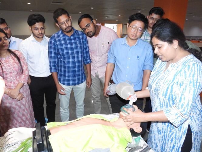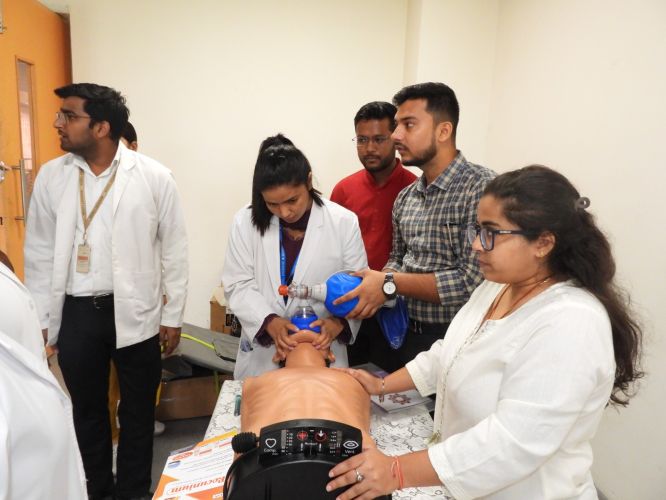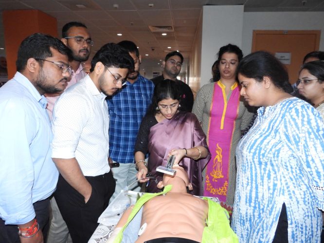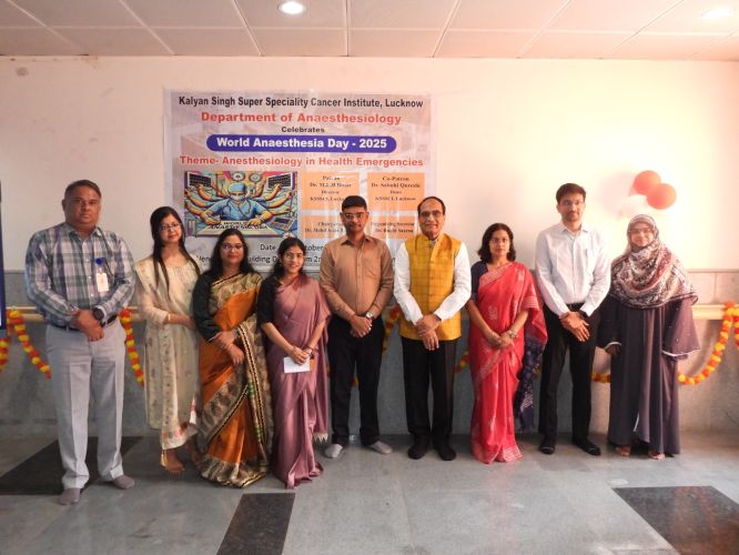 On the occasion of "World Anesthesia Day," a special program was organized by the Department of Anesthesia at Kalyan Singh Cancer Institute, Lucknow, under the direction of Department Head Dr. Ashim Rashid. The chief guest of the program was Institute Director Prof. M.L.B. Bhatt. Present on the occasion were Dean Prof. Sabuhi Qureshi, Registrar Dr. Ayush Lohiya, Chief Medical Superintendent Dr. Vijendra Kumar, Medical Superintendent Dr. Varun Vijay, Dr. Indubala, Dr. Ruchi, Dr. Archana, and Dr. Sahagufta, along with the department's residents and paramedical staff. A Hands-on Workshop on Airway Management was organized at the program, in which faculty and senior residents actively participated. Additionally, a quiz competition was organized for junior residents and paramedical staff, in which participants enthusiastically participated.
