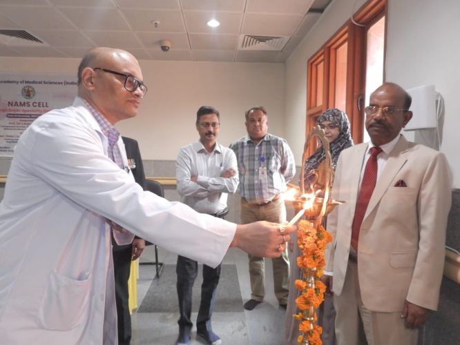 The National Academy of Medical Sciences (NAMS) cell was inaugurated today at the Kalyan Singh Super Specialty Cancer Institute by Dr. Rajendra Prasad, who also shared his experiences and contributions in the field of lung cancer during his lecture.
