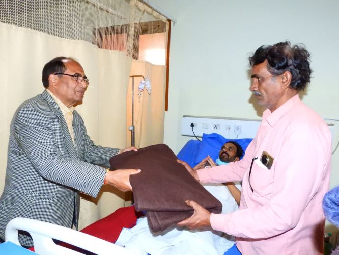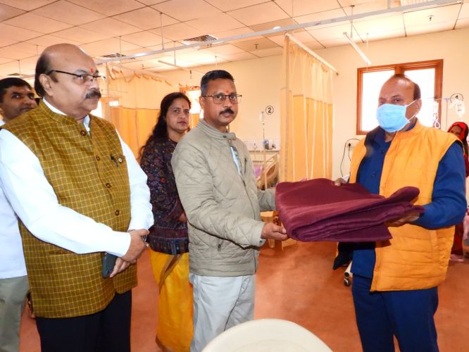 The objective of this service initiative was to provide relief to the family members of patients staying in the hospital during the cold weather. A large number of needy attendants were provided with blankets during the programme.